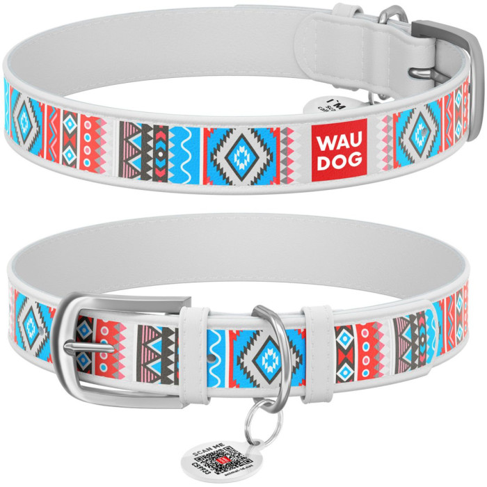 Ошейник WAUDOG Design, рисунок "Этно" белый L 38-49 см