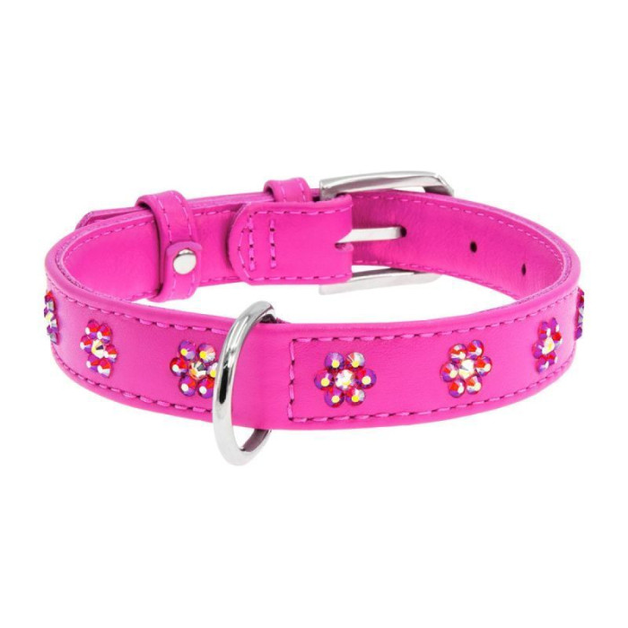 Ошейник WAUDOG Glamour с клеевыми стразами "Цветочек", розовый XS3 21-29 см