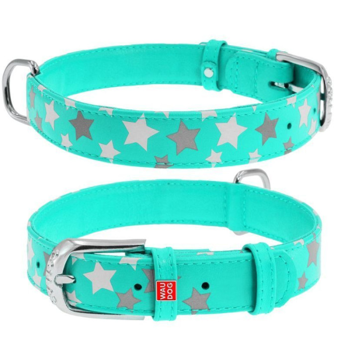 Ошейник WAUDOG Glamour с узором "Звездочка", Ментоловый M 30-39 см