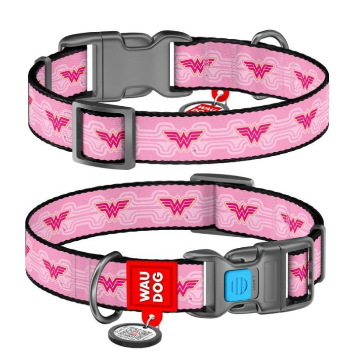 Ошейник WAUDOG Nylon с QR паспортом, рисунок "Чудо-женщина 1", пластиковая пряжка-фастекс M 24-40 см
