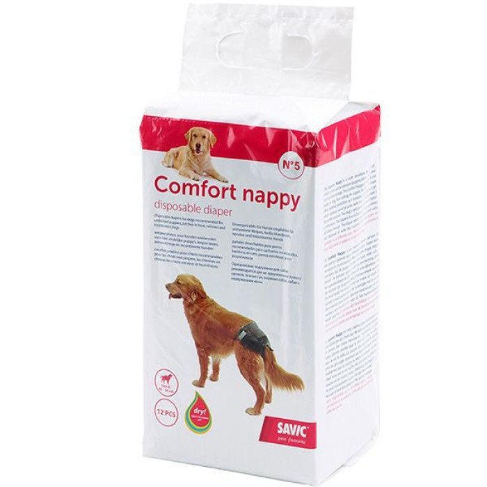 Savic Comfort Nappy – одноразовые гигиенические подгузники для собак или щенков. Незаменимы в период приучения щенка к туалету, для нервных и пожилых собак, течных сук, собак с недержанием мочи и питомцев после операции. Актуальны дома и в путешествии.