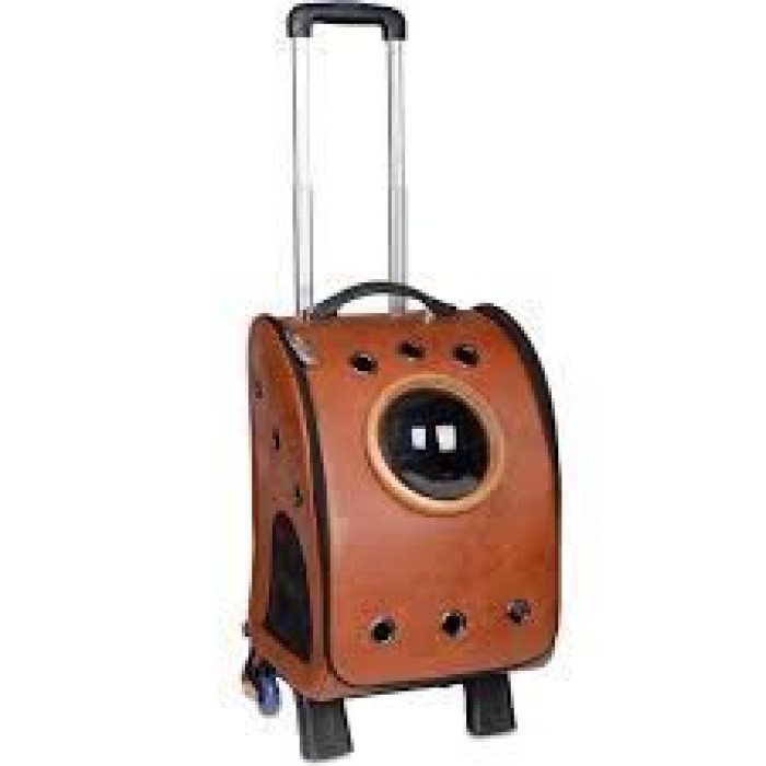 Переносной рюкзак на колесиках для домашних питомцев 33х44х27, коричневый