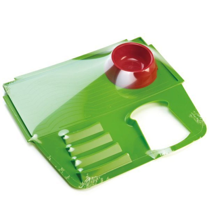 Платформа и кормушка изготовлены из гладкого прочного пластика, который при необходимости легко мыть и чистить. Чтобы кормушка не опрокидывалась, на платформе предусмотрено специально оборудованное место под ее размеры.