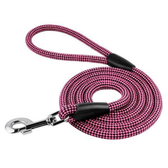 Поводок для собак Bronzedog Active из альпинистского шнура 183 см, Черно-Розовый