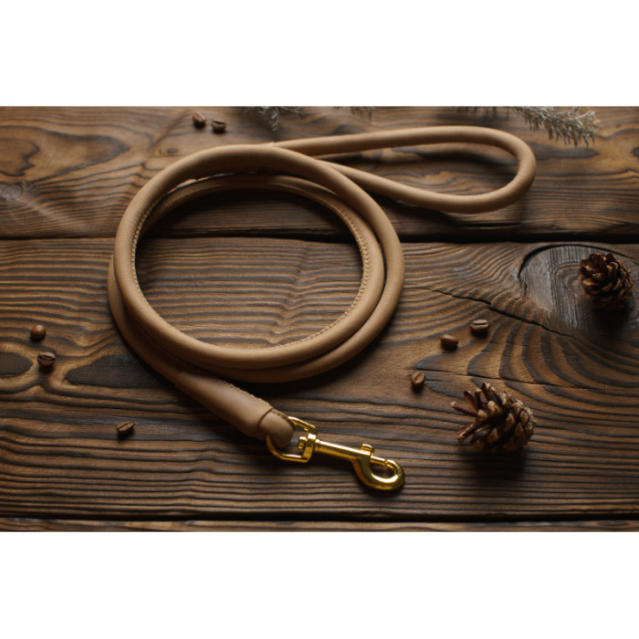 Поводок для собак BronzeDog Crazy кожаный круглый золото Бежевый, S: 153 см, 9 мм