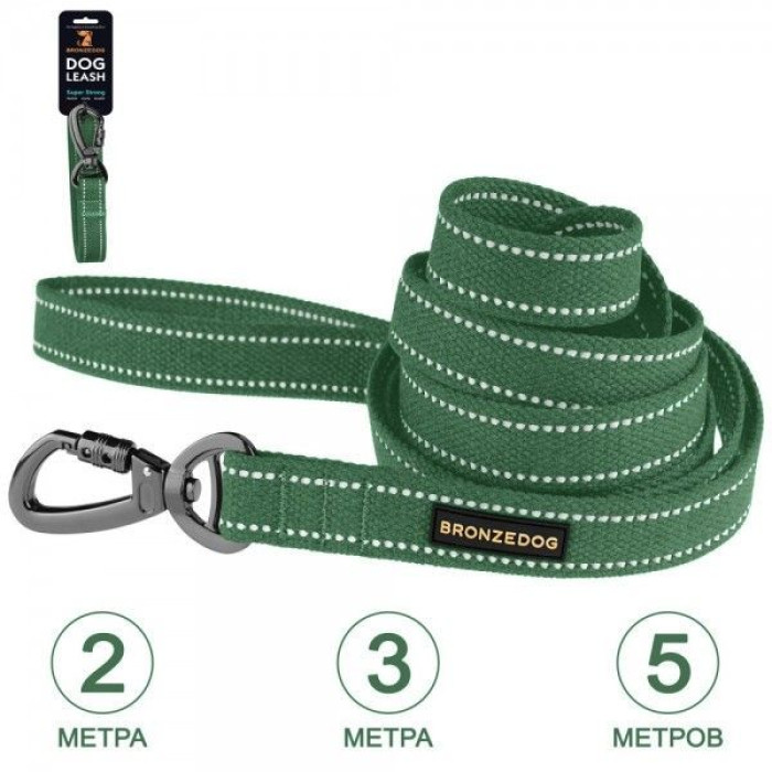 Поводок для собак Bronzedog Сotton рефлекторный х/б брезент, Армейский 2 м, 1,6 см