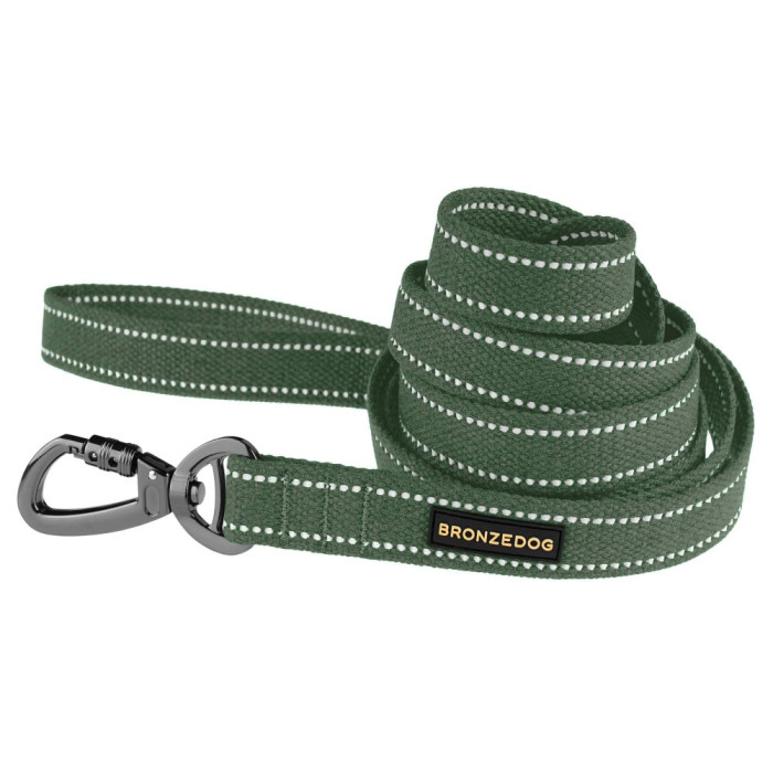Поводок для собак Bronzedog Сotton рефлекторный х/б брезент, Хаки M(1) 2 м 2 см
