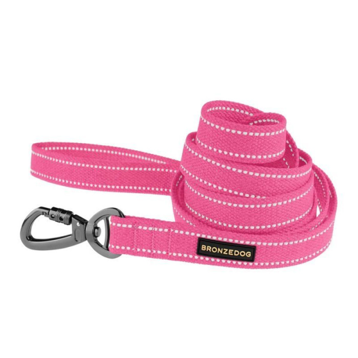 Поводок для собак Bronzedog Сotton рефлекторный х/б брезент, Розовый S(3) 5 м 1,6 см