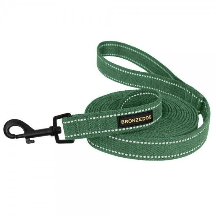 Поводок для собак Bronzedog Сotton рефлекторный х/б брезент Стандарт, Армейский S 200 см, 1,6 см