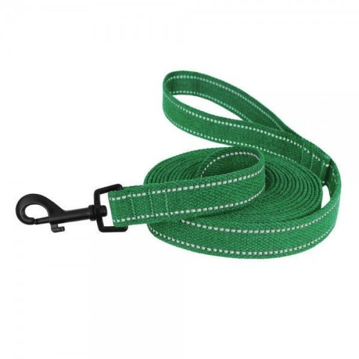 Поводок для собак Bronzedog Сotton рефлекторный х/б брезент Стандарт, Изумрудный M 200 см, 2 см