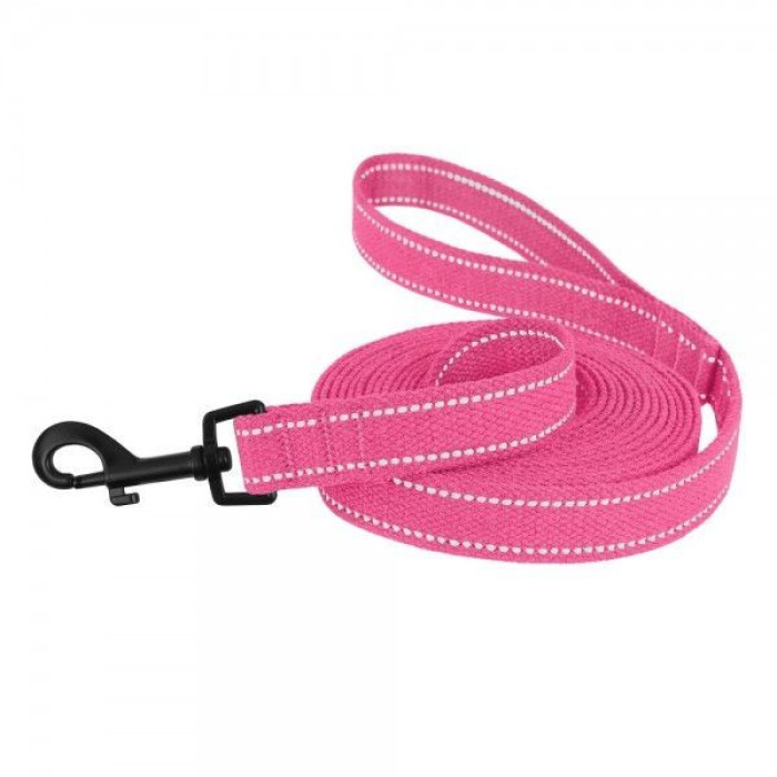 Поводок для собак Bronzedog Сotton рефлекторный х/б брезент Стандарт, Розовый M 200 см, 2 см