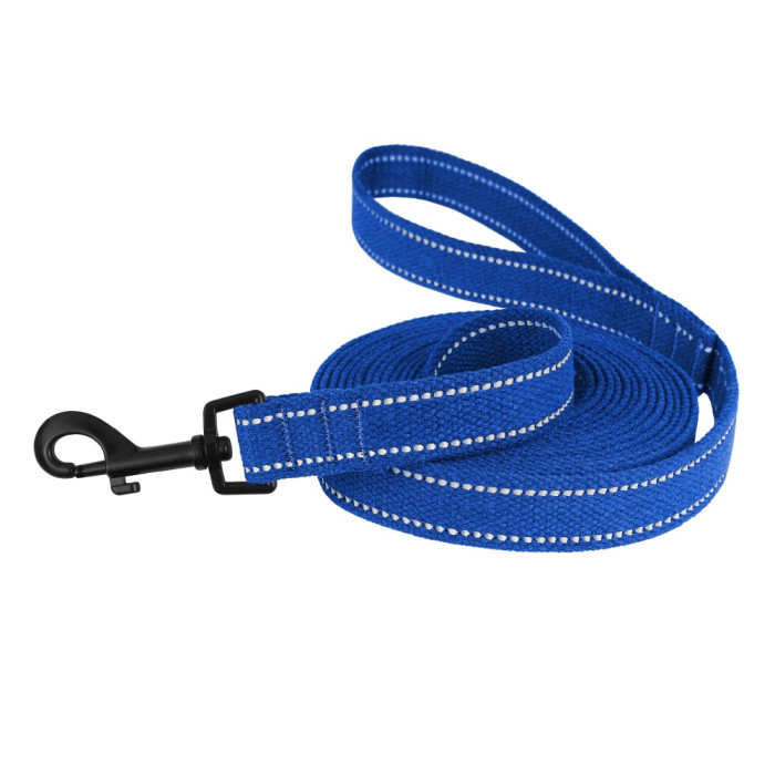 Поводок для собак Bronzedog Сotton рефлекторный х/б брезент Стандарт, Васильковый M 200 см, 2 см
