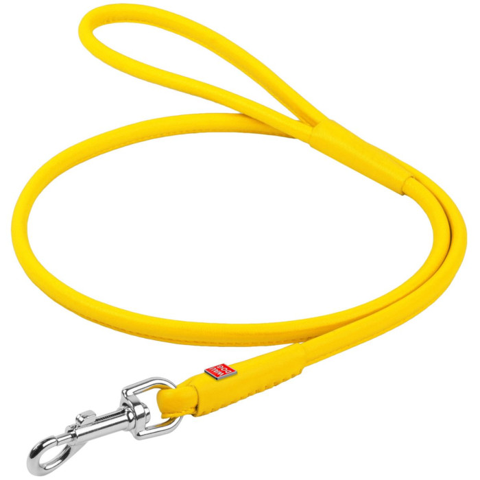 Поводок для собак кожаный WAUDOG Glamour, круглый, жёлтый L 122 см