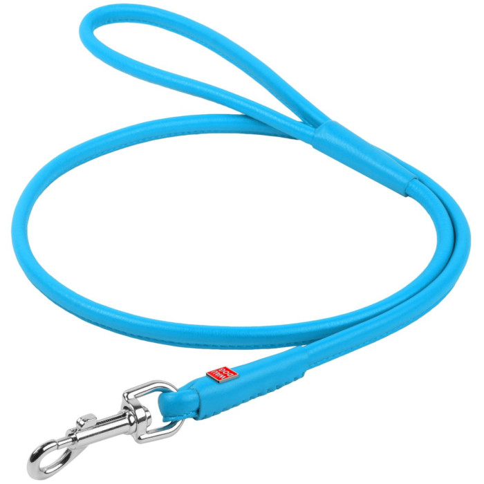 Поводок для собак кожаный WAUDOG Glamour, круглый, голубой L 122 см