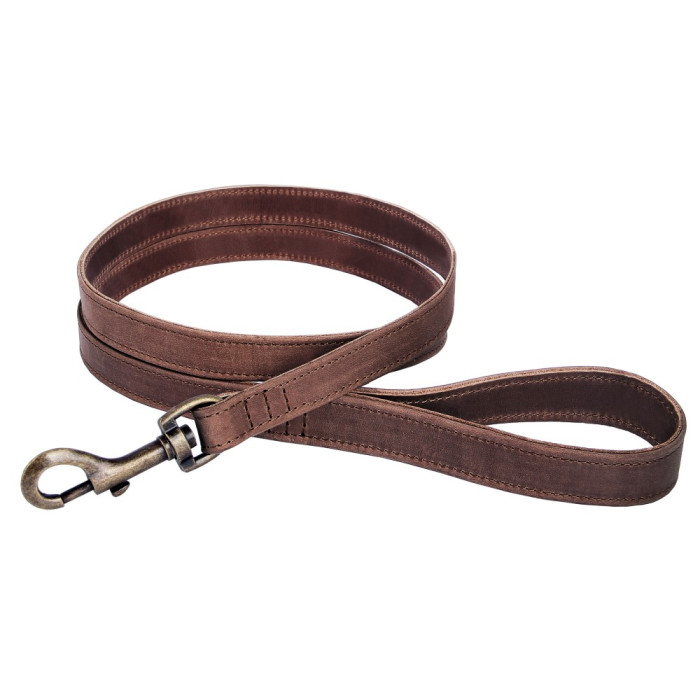 Поводок для собак кожаный BronzeDog Antiq коричневый, S 153 см, 1,2 см