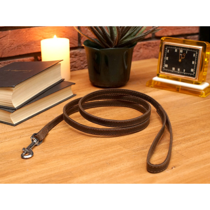 Поводок для собак кожаный BronzeDog Crazy хром Темно-коричневый S 153 см 12 мм