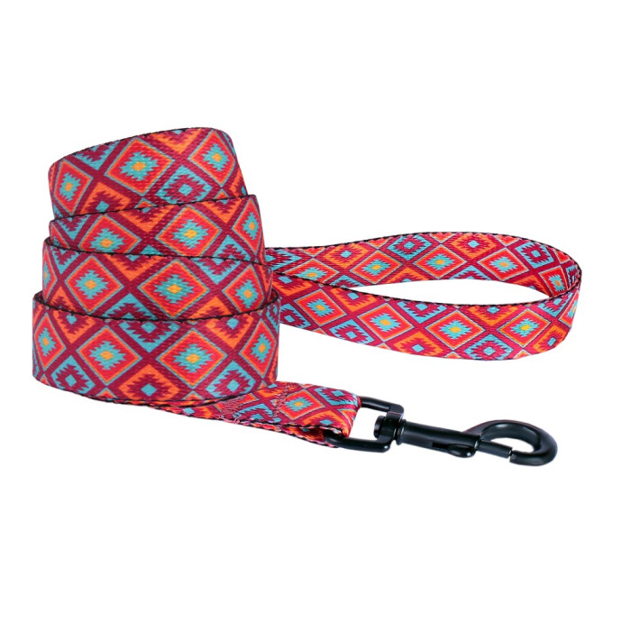 Поводок для собак нейлоновый Bronzedog Urban принт Гуцульский 152 см, Красный S 1,6 см