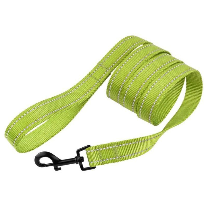 Поводок нейлоновый для собак Bronzedog Active, салатовый со светоотражением, 152 см M 2 см