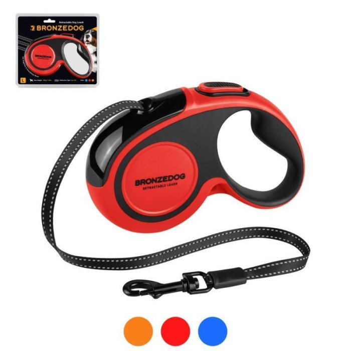 ПОВОДОК-РУЛЕТКА BRONZEDOG 5 М С РЕФЛЕКТОРНОЙ ЛЕНТОЙ