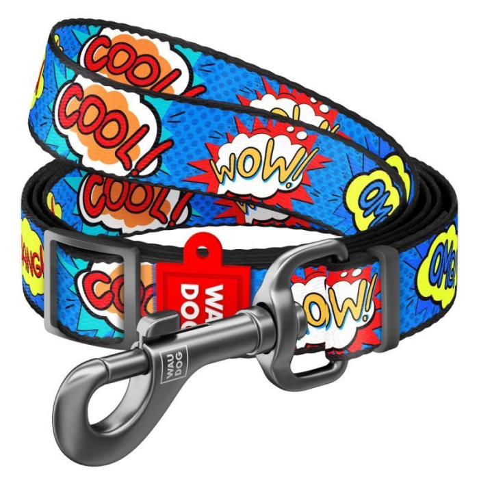 Поводок WAUDOG Nylon, регулируемый, рисунок "ВАУ", 152-183 см S 15мм