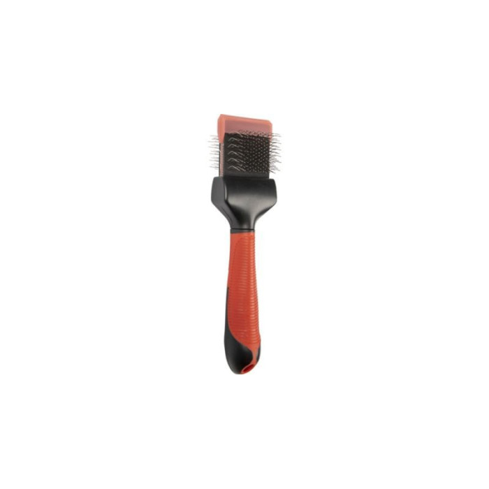 Особо мягкая двусторонняя универсальная щетка с одной стороны с прямыми тонкими зубцами для мягкого расчесывания. С другой стороны, с гибкими загнутыми зубцами - для вычесывания шерсти. Обеспечит идеальный уход за шерстью животного.