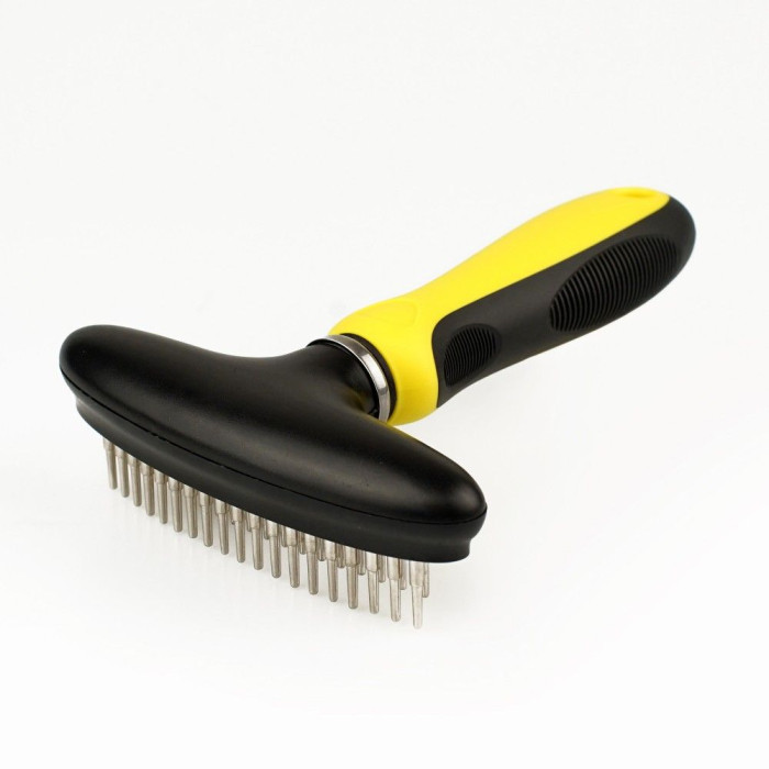 Рабочая поверхность имеет два ряда вращающихся зубьев. Крутящаяся конструкция позволяет более нежно и аккуратно распутать длинную и среднюю шерсть, а также массажировать кожные покровы.
