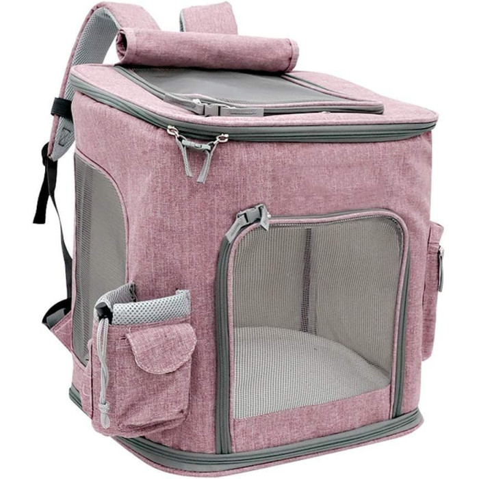 Рюкзак-переноска для питомцев до 10кг, квадратная, розовая