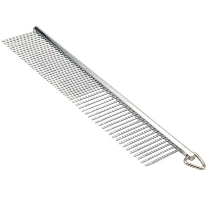 Расческа очень практична: В одной модели комбинируются зубцы с разным шагом. Для предварительного расчесывания используется сторона с редкими зубцами, для расчесывания морды, усов, создания объема и финишных правок – с частыми зубцами.