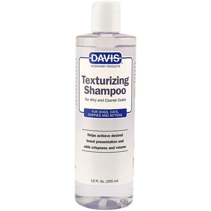 Текстурирующий шампунь для собак и котов Davis Texturizing предназначен для пород домашних животных с жесткой и грубой шерстью. Например, средство будет идеальным для таких пород собак, как терьеры, акиты, шпицы, колли и прочие. Шампунь одинаково хорош для частого применения и при подготовке к выставкам, т.к. имеет достаточно мягкий состав, который безопасен для «уставшей», поврежденной и перегруженной шерсти.