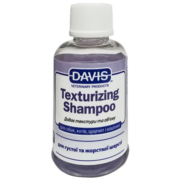 Текстурирующий шампунь для собак и котов Davis Texturizing предназначен для пород домашних животных с жесткой и грубой шерстью. Например, средство будет идеальным для таких пород собак, как терьеры, акиты, шпицы, колли и прочие. Шампунь одинаково хорош для частого применения и при подготовке к выставкам, т.к. имеет достаточно мягкий состав, который безопасен для «уставшей», поврежденной и перегруженной шерсти.