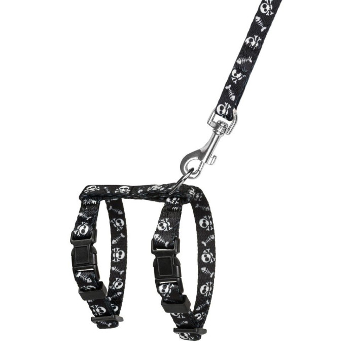 Шлей с поводком для кошек и мелких собак BronzeDog Urban Черепа Черная XS