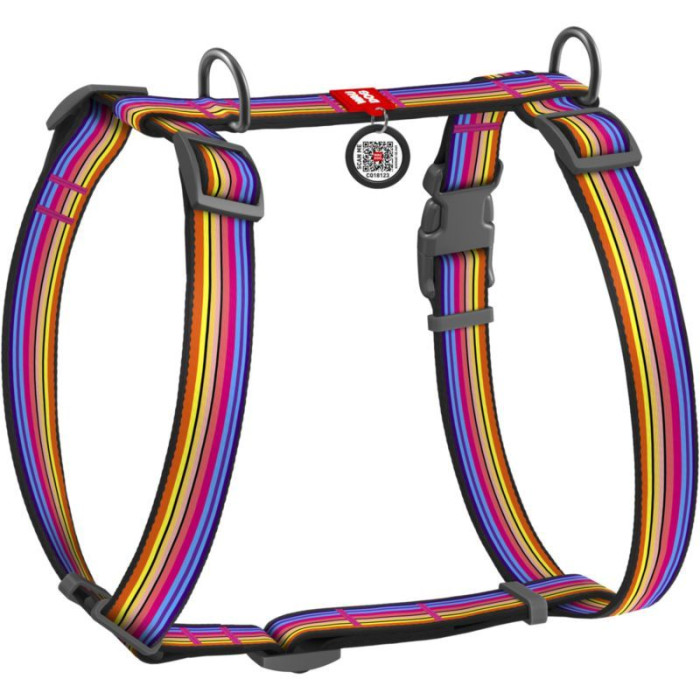 Шлея для собак анатомическая H-образная WAUDOG Nylon с QR паспортом, с рисунком "Линия 1" S 30-50см
