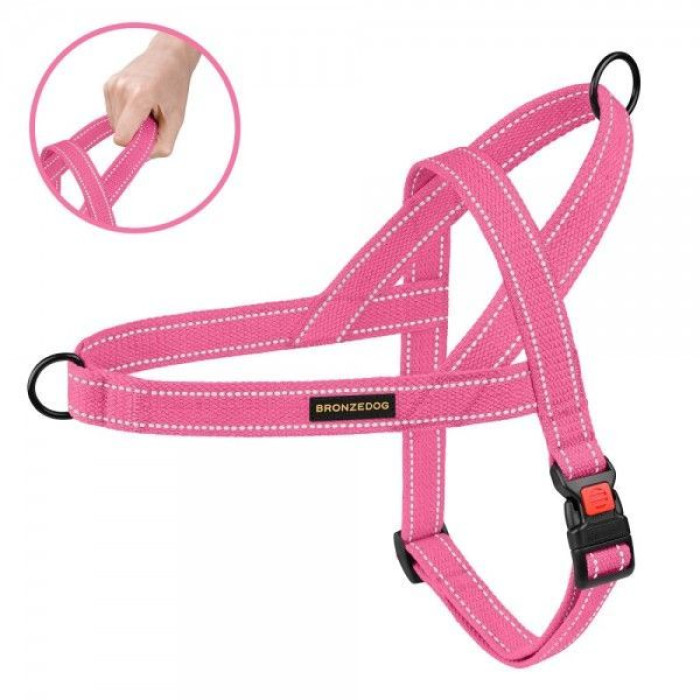 Шлея для Собак BronzeDog Сotton х/б Брезент Рефлекторная Скандинавская Розовая L 54-68 см