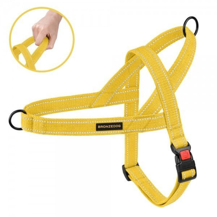 Шлея для Собак BronzeDog Сotton х/б Брезент Рефлекторная Скандинавская Желтая L 54-68 см