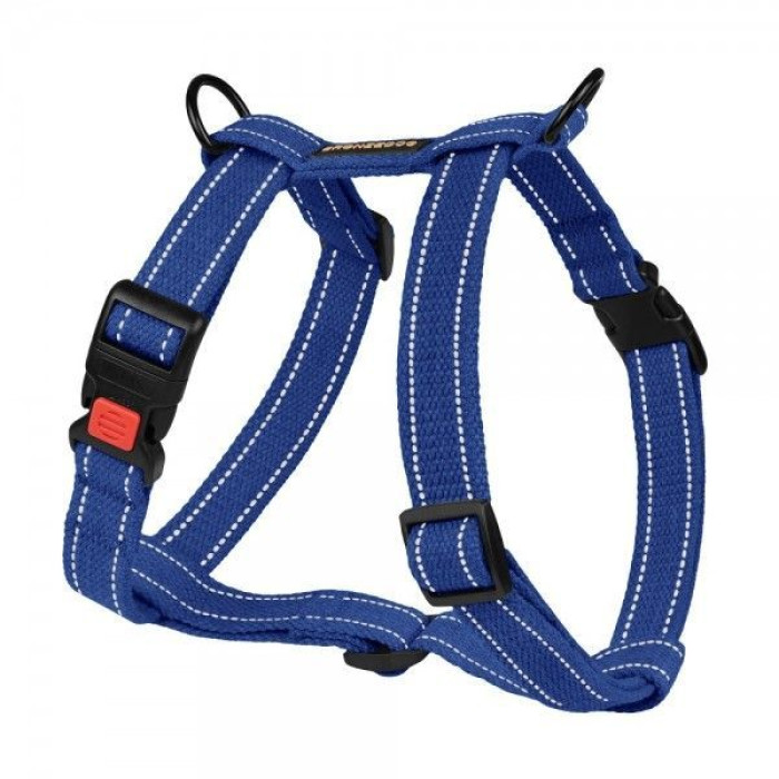 Шлея для Собак BronzeDog Сotton Н-образная Рефлекторная х/б Брезент Синяя S 40-53 см