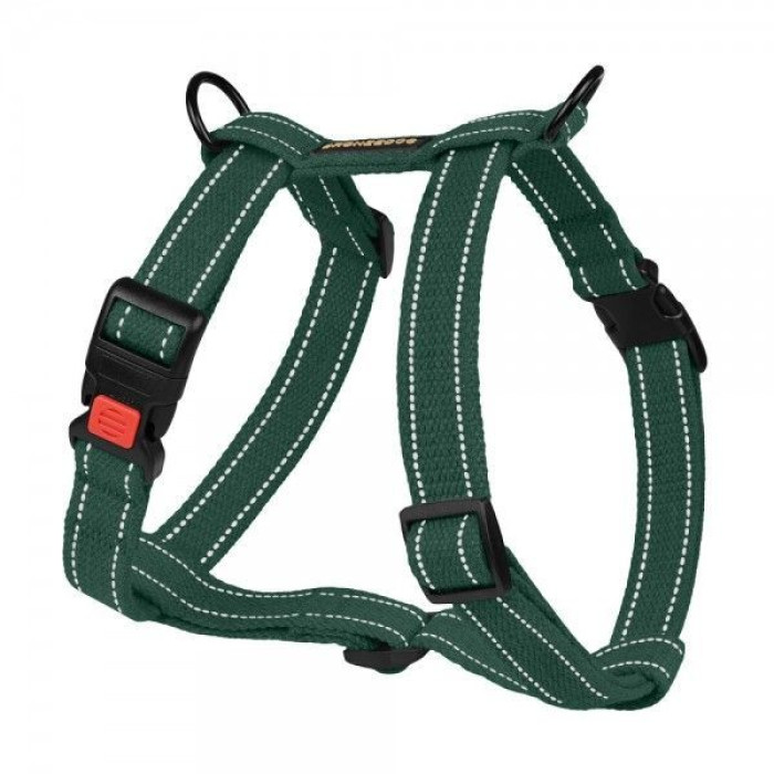 Шлея для Собак BronzeDog Сotton Н-образная Рефлекторная х/б Брезент Зеленая S 40-53 см