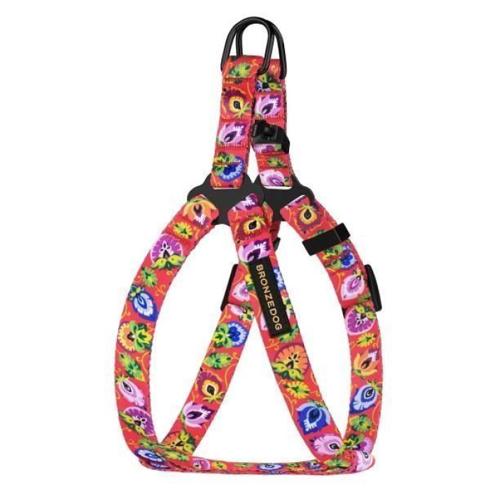 Шлея для собак BronzeDog Urban Folk нейлоновая c металлической фурнитурой, Коралловая L 58-71 см