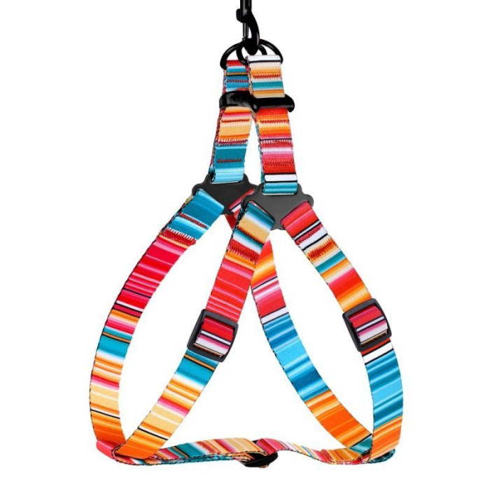 Высокопрочный нейлон, из которого изготовлена шлея, не теряет цвет при стирке и не выгорает на солнце.