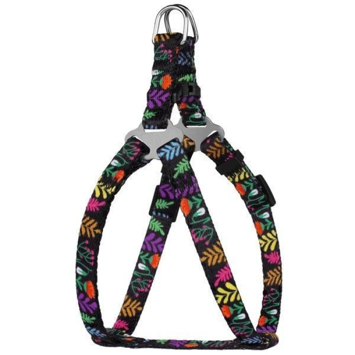 Шлея для собак нейлоновая BronzeDog Urban Цветы, Черная L 58-71 см
