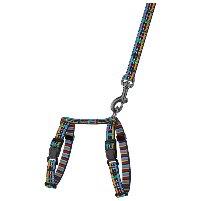 Шлея с поводком для кошек и мелких собак BronzeDog Urban Art Клетка XS 23-37 см