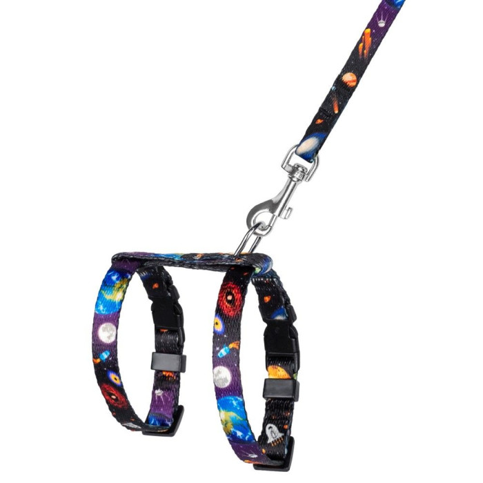 Шлея с поводком для кошек и мелких собак BronzeDog Urban Cosmos Черная 2XS