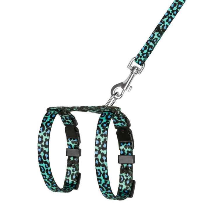 Шлея с поводком для кошек и мелких собак BronzeDog Urban Леопард Бирюзовая XS