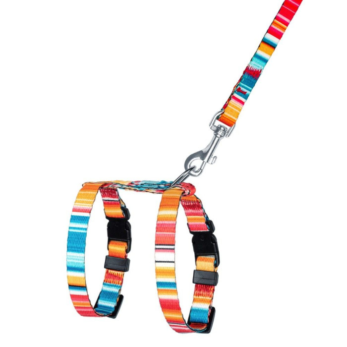 Высокопрочный нейлон, из которого изготовлена шлея, не теряет цвет при стирке и не выгорает на солнце.