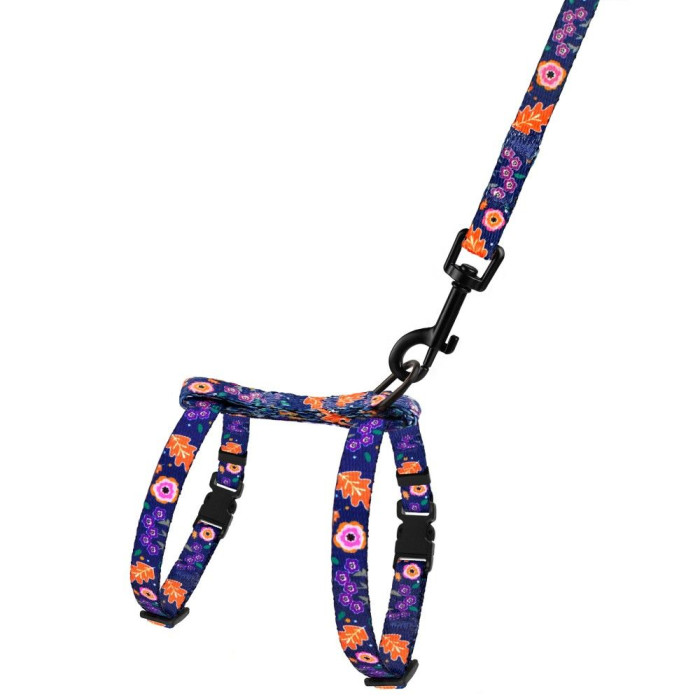 Высокопрочный нейлон, из которого изготовлена шлея, не теряет цвет при стирке и не выгорает на солнце.