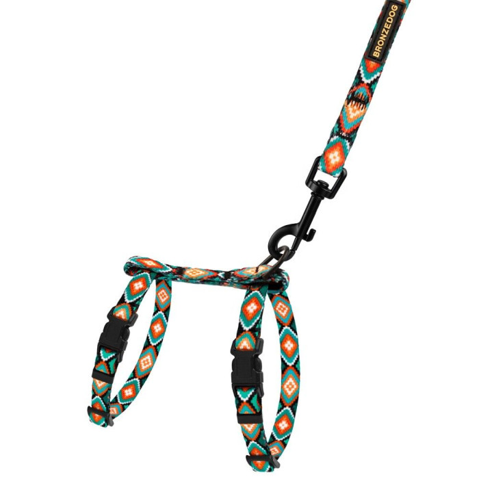 Шлея с поводком для котов и мелких собак BronzeDog Urban, Ромбы 2XS
