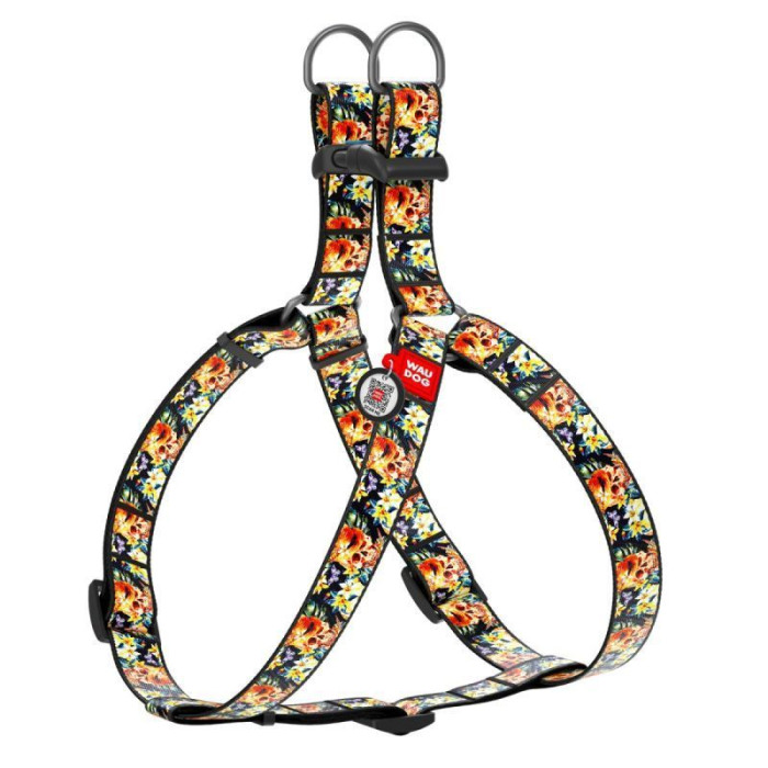 Шлея WAUDOG Nylon с QR паспортом, рисунок "Гламурные черепа" M 50-80 см