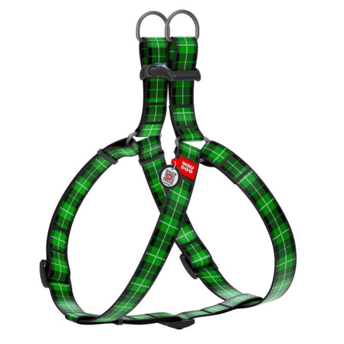 Шлея WAUDOG Nylon с QR паспортом, рисунок "Шотландка зеленая" L 60-90 см