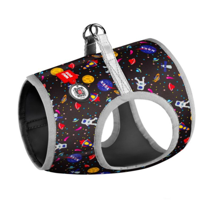 Шлея WAUDOG с QR паспортом, рисунок "NASA" S1 40-45см