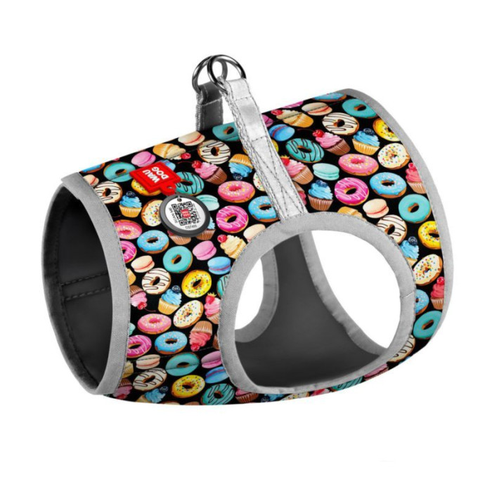 Шлея WAUDOG с QR паспортом, рисунок "Пончики" S2 46-50см