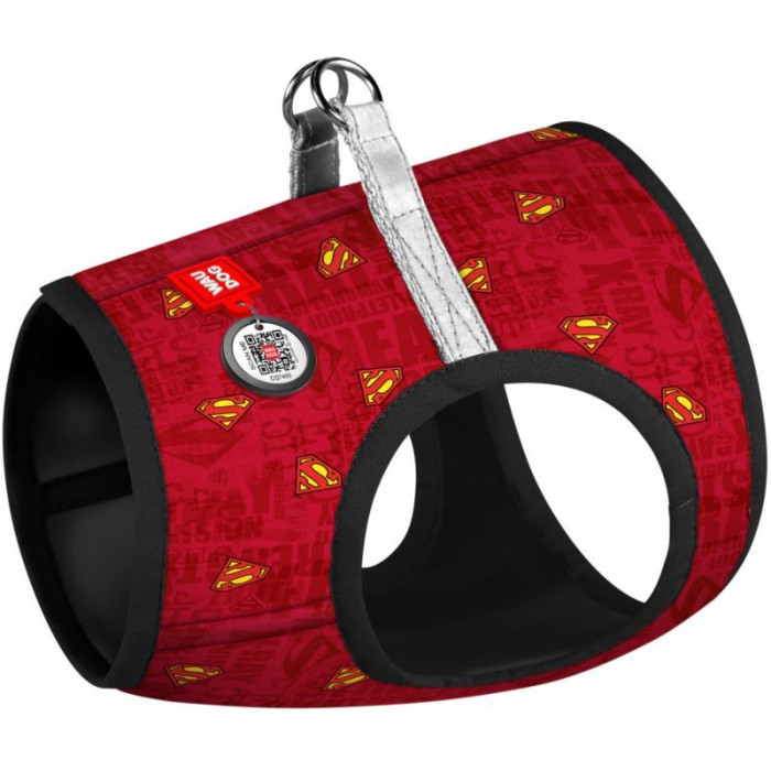 Шлея WAUDOG с QR паспортом, рисунок "Супермен красный" XS1 24-27 см